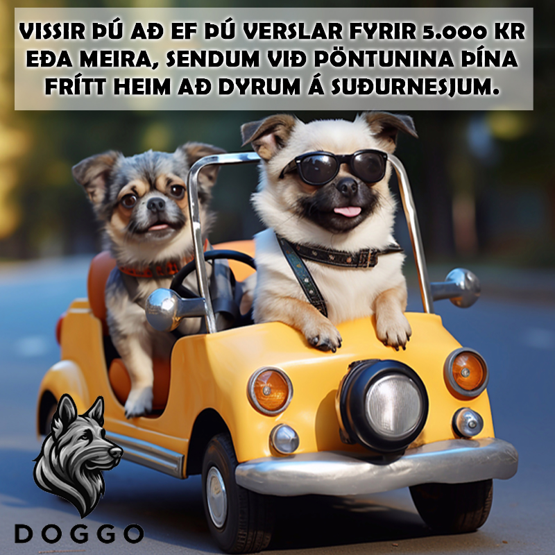 Ef þú pantar fyrir 5.000 kónur eða meira færðu fría heimsendingu innan Suðurnesja.